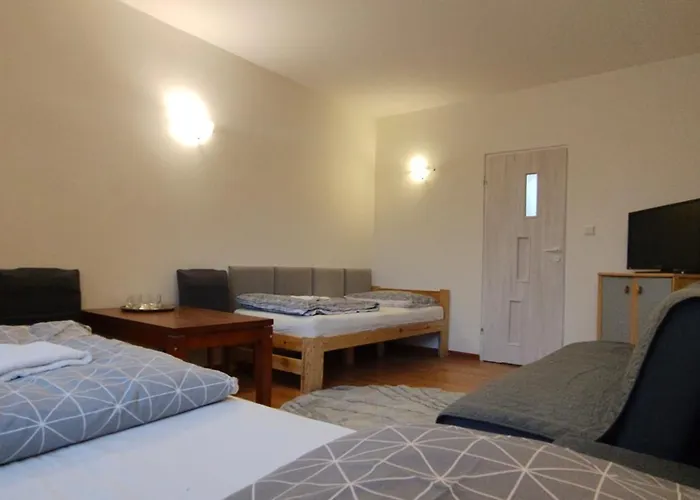 Noclegi W Otoczeniu Natury - Bezplatny Parking apartment is furnished with wardrobes and features such modern comforts as climate control. Within the in-room media amenities, there is a flat screen TV. This apartment comes with a private bathroom. Towels can also be found.